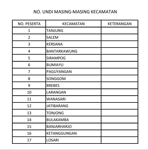 KKG PAI KECAMATAN PAGUYANGAN NOMOR UNDIAN LOMBA MAPSI KABUPATEN